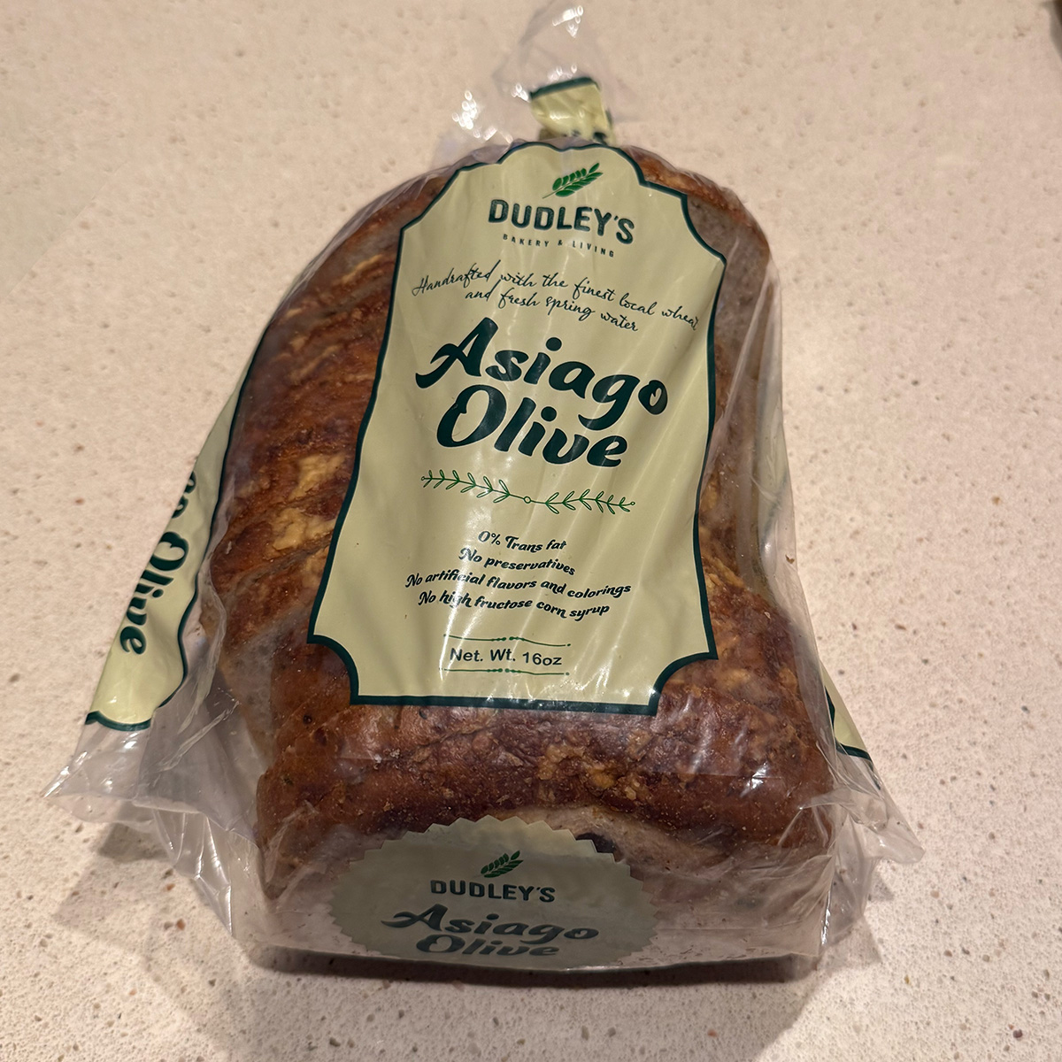 Dudley's BreadsAsiago Olive$6.95 Quantity Add to cart Related products Ginger Raisin Fruit BarsDudley's Breads $9.95 Add to cart Apple Nut BreadDudley's Breads $7.95 Add to cart Date Nut Raisin BreadDudley's Breads $7.95 Add to cart